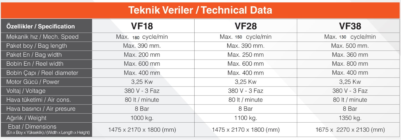 CHEETAH series Continous type machines are the new generation  machines that they can pack in Pillow and Gusseted bags. They are produced with driven by servo motors and based on Motion Control system. These machines can be integrated with different kind of dosing systems depends on the product specifications.